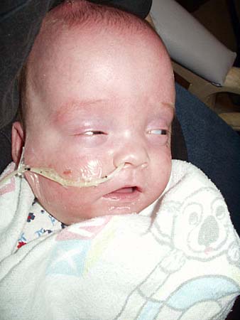 The bump on the top of her head is where they placed the valve for the shunt. Through that valve is a tube that goes into the ventricles of her brain, and the other side of the tube goes down the right side of her head (the left side in the picture), back behind her ear, and into her abdomen, where the cerebrospinal fluid is absorbed into her bloodstream.